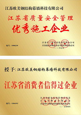 江蘇歐美鋼結(jié)構(gòu)幕墻科技有限公司鄭州分公司是集團(tuán)按全國(guó)發(fā)展規(guī)劃部署要求,特在鄭州設(shè)立的分公司。本公司前身為八一網(wǎng)架集團(tuán)有限公司,隸屬于解放軍 總后勤部,成立于1956年,2006年企業(yè)改制成立江蘇歐美鋼結(jié)構(gòu)科技有限公司,是住建部核定的鋼結(jié)構(gòu)工程承包壹級(jí)、建筑幕墻工程承包壹級(jí)、建筑裝飾裝修工程承包貳級(jí)、金屬門(mén)窗工程承包叁級(jí)、地基與基礎(chǔ)工程承包叁級(jí)。同時(shí)兼有鋼結(jié)構(gòu),幕墻,裝飾工程三項(xiàng)甲 級(jí)設(shè)計(jì)資質(zhì)。是一家集鋼結(jié)構(gòu)、建筑幕墻、金屬門(mén)窗、地基與基礎(chǔ)及建筑裝修裝飾為一體的大型綜合性建筑企業(yè)。